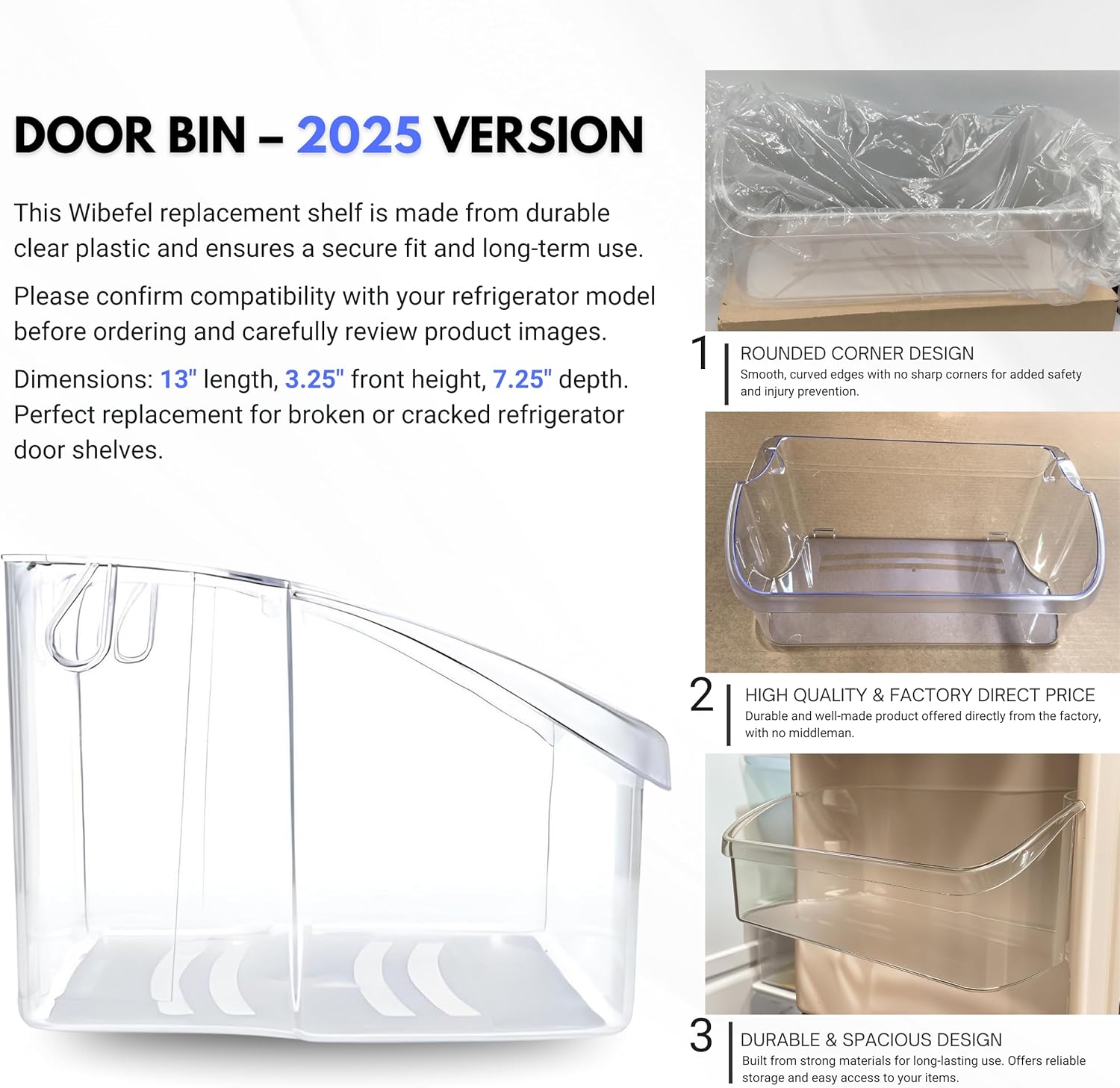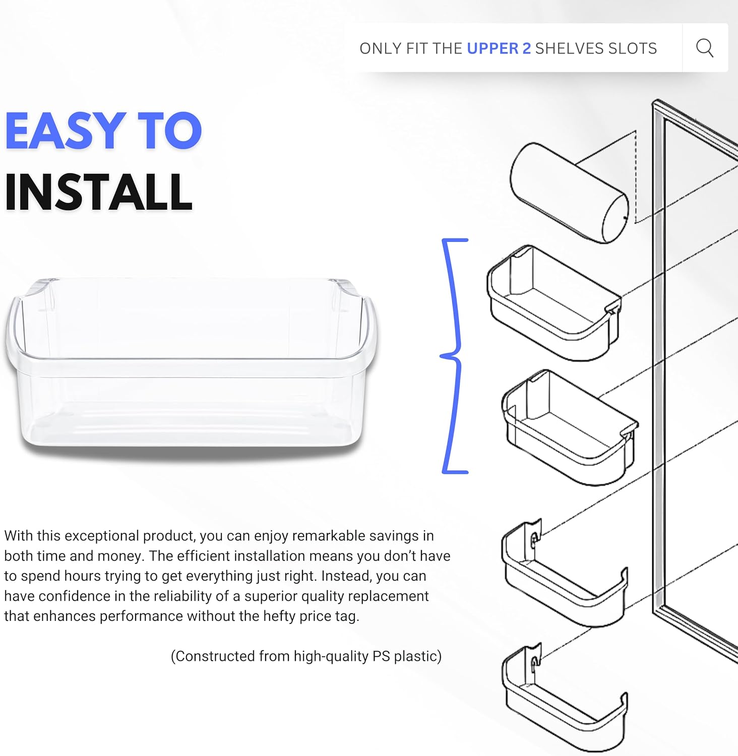 This door bin shelf is designed to fit only the top two door shelves refrigerator. Make sure your old bin measures about 13″ wide x 7.25″ deep x 3.25″ high. If the size is different, this bin won’t fit your fridge.